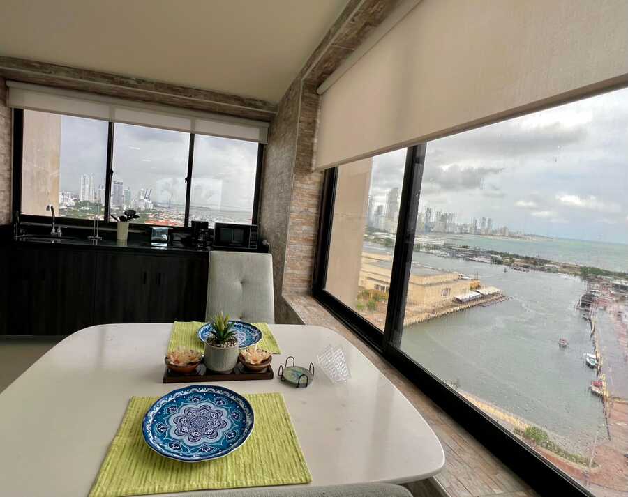 Acogedor loft en piso 15 con una vista espectacular a la ciudad amurallada.. Este espacio de 40 m² combina diseño moderno y funcionalidad, con una alcoba abierta que le da un ambiente amplio y fresco, perfecto para disfrutar cada rincón. Cuenta con 1 baño y lindos acabados que le aportan un toque elegante y cómodo.