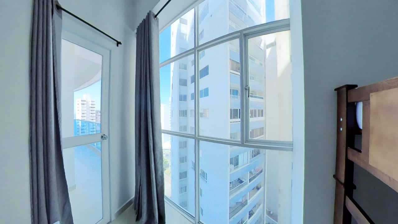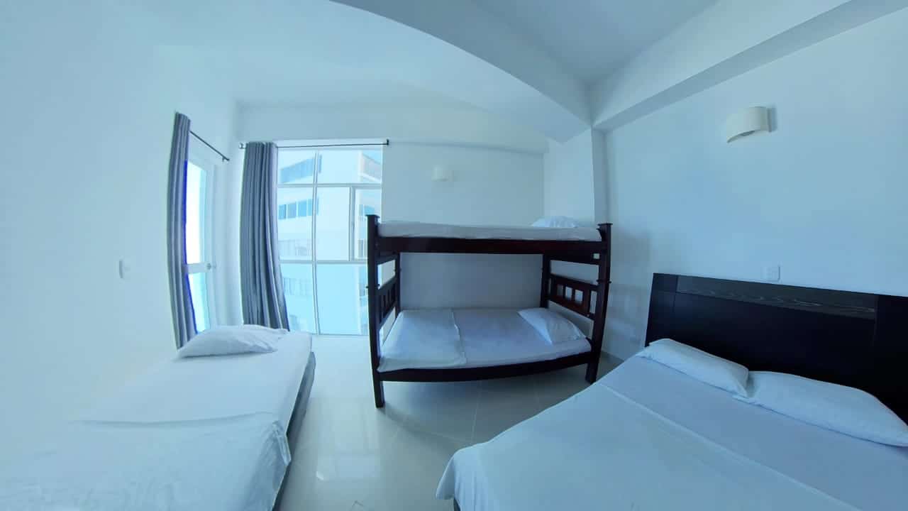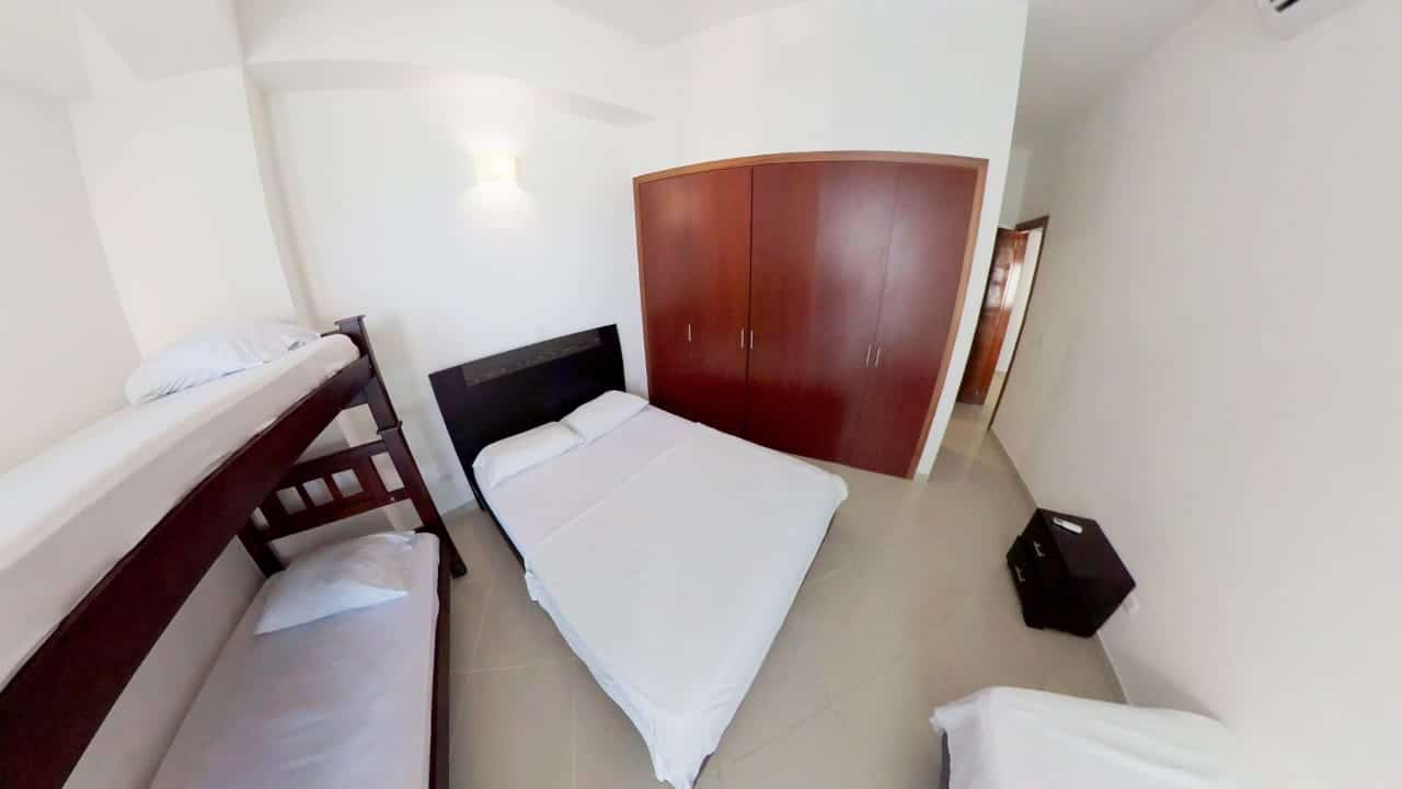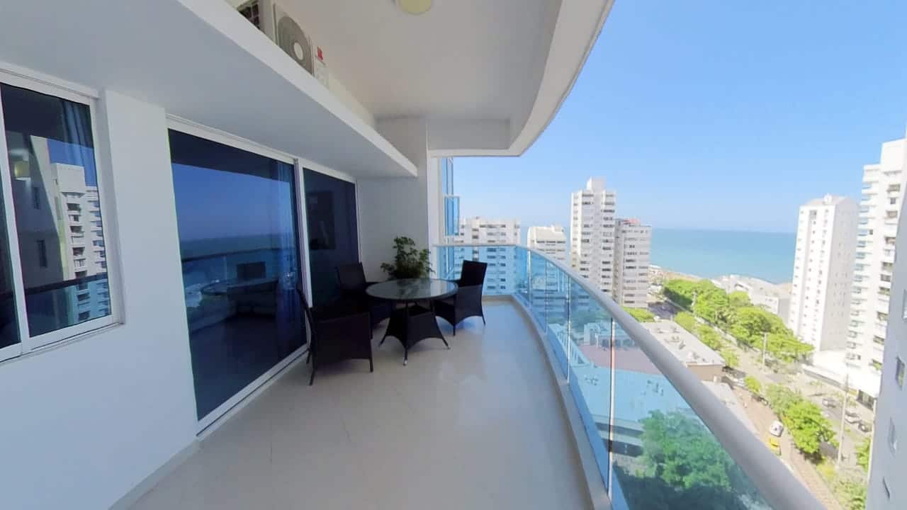 Confortable apartamento con balcón y hermosa vista al mar, sala, comedor, cocina abierta, dos habitaciones, la principal con baño interno, un segundo baño, parqueadero incluido en el precio. Incluye aires acondicionados.