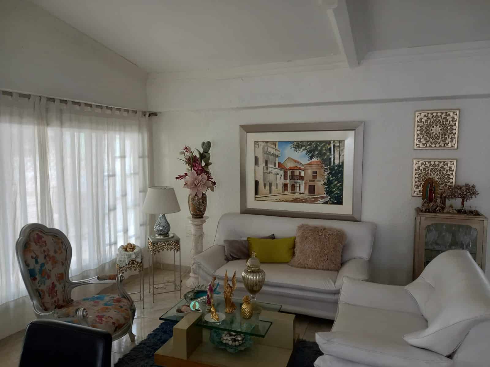 Casa grande con terraza, garage interno, sala, sala de estar, área de mecedores, patio interno, cocina, patio , dos callejones, baño de servicio, cuarto para la lavadora, área de labores, 3 habitaciones, dos con baño interno, la principal, además tiene un área de estudio, tercera habitación con baño afuera, que también sirve de baño social, aunque es completo.
