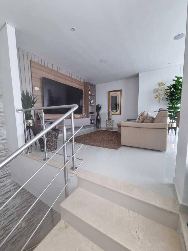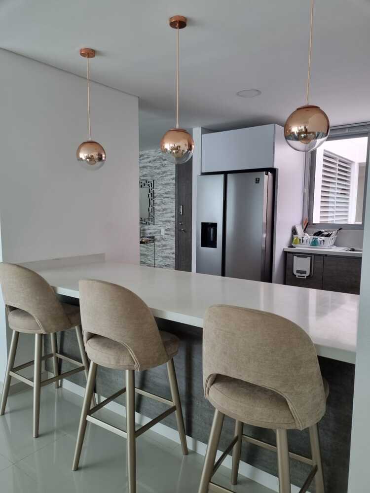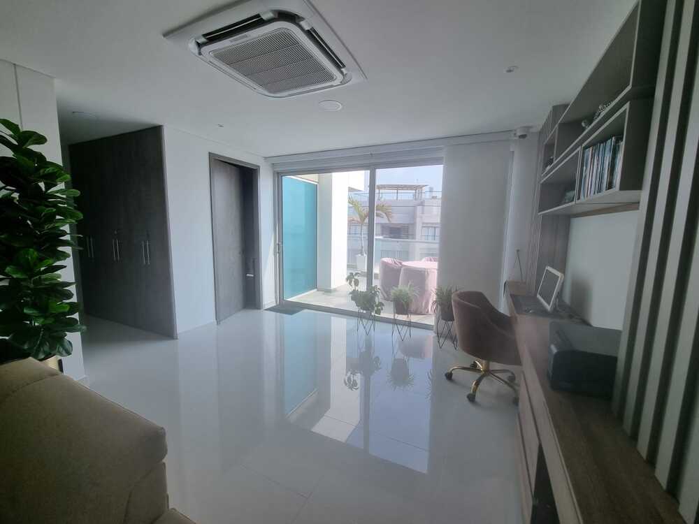 Amplio, confortable apartamento de 261 metros construidos en dos niveles, cuenta en un primer nivel con Terraza, sala, comedor, baño social, alcoba con baño y clóset, cocina integral, segunda alcoba con baño y clóset, cuarto de labores y alcoba y baño de servicio. En el segundo nivel, encontramos el acceso por las escaleras, balcón, un estar, baño social, sala de televisión, alcoba con clóset, alcoba principal con baño con tina y jacuzzi y walking clóset. El apartamento cuenta con dos parqueaderos y dos depósitos. Incluye cortinas con Blockout tipo panel y aires acondicionados tipo casette. El edificio cuenta con ascensor, planta eléctrica, dos lobbies climatizados, piscinas, gimnasio, salón de eventos, terraza con bar, zonas verdes y vigilancia.