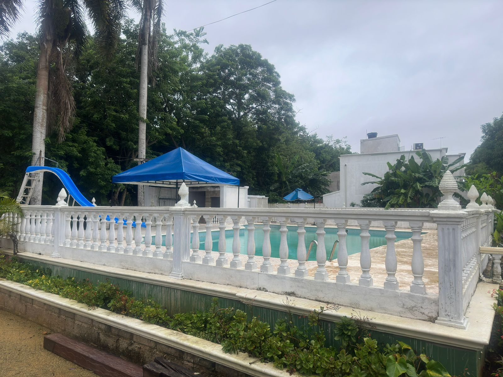 En el área del frente hay dos kioskos decorativos con sus bancas con estructuras en postes de madera inmunizada de 4.3 metros. Cancha múltiple, pequeña zona de juegos para niños en madera inmunizada. En el predio hay pozo artesanal pero no está en uso. Kiosko social. Construcción en proceso, terminada en un 80% diseñada para uso social. Cuenta con espacio abierto de sala, un cuarto y dos baños ( damas y caballeros). Esta construción es una estructura conformada por columnas, vigas y placa de concreto reforzado, piso en placa de concreto con zonas de tablón, paredes levantadas en bloques de concreto abuzardado. Tiene caseta para el celador con baño.