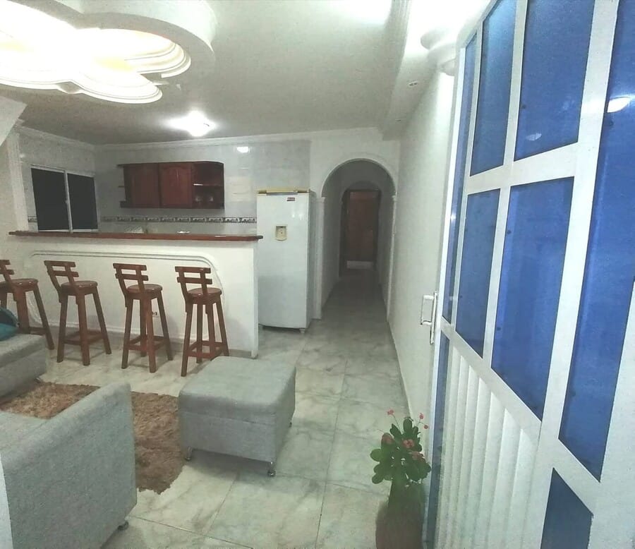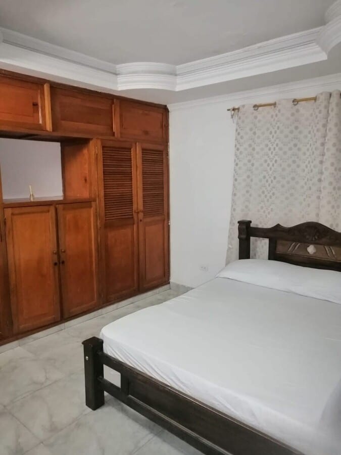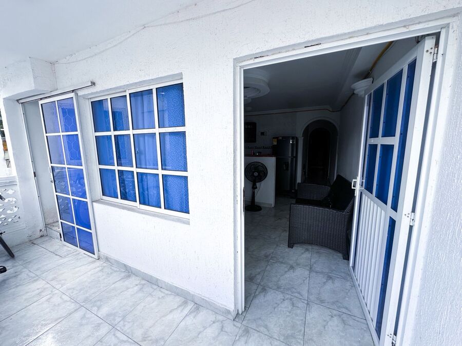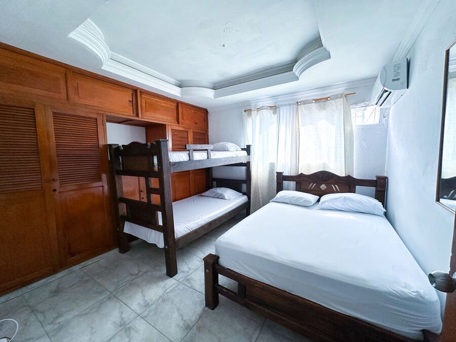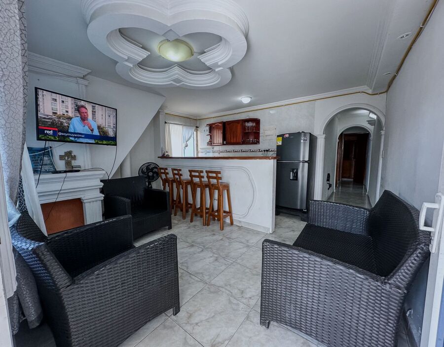 El apartamento cuenta con cuatro habitaciones con baño propio en el primer piso y una alcoba amoblada en el segundo piso, equipada con ventilador, aire de ventana y minisplit en las habitaciones; está ubicado en la zona de más alta valorización de la ciudad y goza del privilegio de un ambiente natural y tranquilo, cerca al aeropuerto, supermercados y la playa, puede arrendarse tambien sin muebles, con parqueadero en edificio cercano, contactanos.