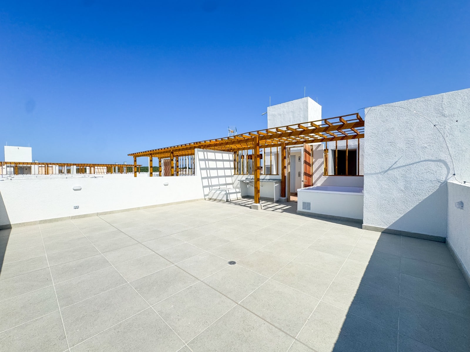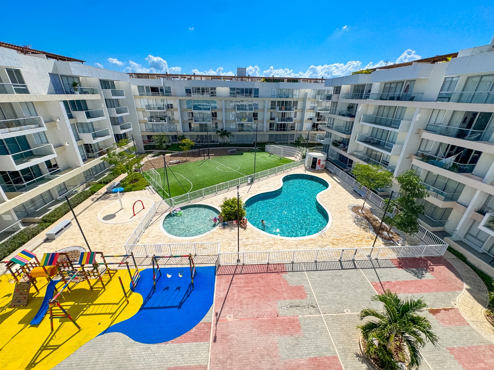 Descubre el equilibrio perfecto entre confort interior y exclusividad al aire libre en este espectacular apartamento. Con 44 m² de área privada inteligentemente distribuidos, esta propiedad brilla por sus impresionantes espacios exteriores: disfruta de un balcón de 14 m² y una inigualable terraza privada de 58 m² equipada con jacuzzi y zona BBQ completa (mesón y lavaplatos), el escenario perfecto para relajarte o ser el mejor anfitrión. El interior te recibe con una luminosa sala-comedor, cocina moderna, zona de labores, un baño social para tus visitas y una confortable alcoba principal con walk-in closet y baño privado. Todo esto se complementa con un parqueadero totalmente independiente. Además, vivir aquí es tener un estilo de vida tipo resort todos los días: relájate en la piscina familiar del primer piso o sube el nivel en la exclusiva torre Club House, donde te esperan un sauna, baño turco, piscina infinita y zonas BBQ adicionales. ¡Una oportunidad única para invertir o vivir como siempre soñaste!